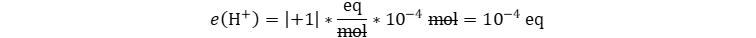 equiv de H+ con sus moles, obtener los equivalentes en carga de H+ en 10-4